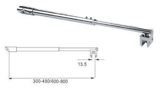 The shower door support rod is suitable for forming and fixing installation of 8-12mm glass, with a shiny chrome and brushed nickel finish on the surface.